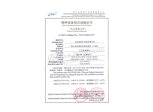 截止閥特種設(shè)備型式試驗(yàn)證書(shū)
