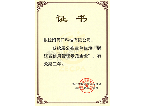 續(xù)展浙江省守合同重信用示范企業(yè)