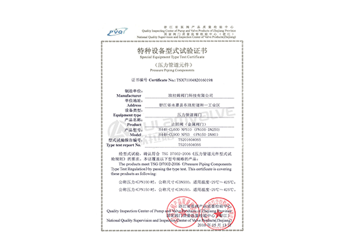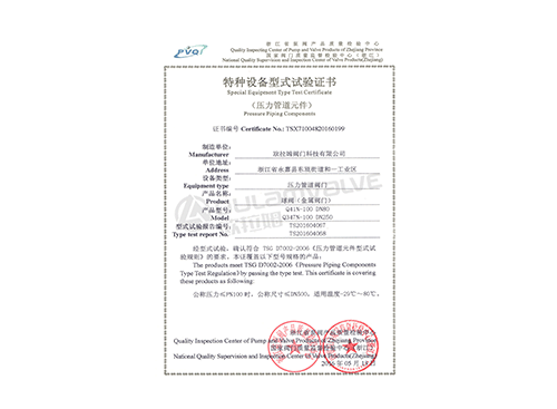 球閥特種設(shè)備型式試驗(yàn)證書(shū)