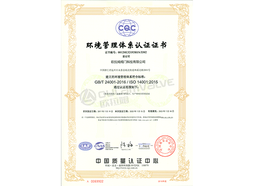 環(huán)境管理體系認(rèn)證證書(shū)