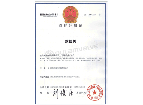 “歐拉姆”商標(biāo)注冊(cè)證