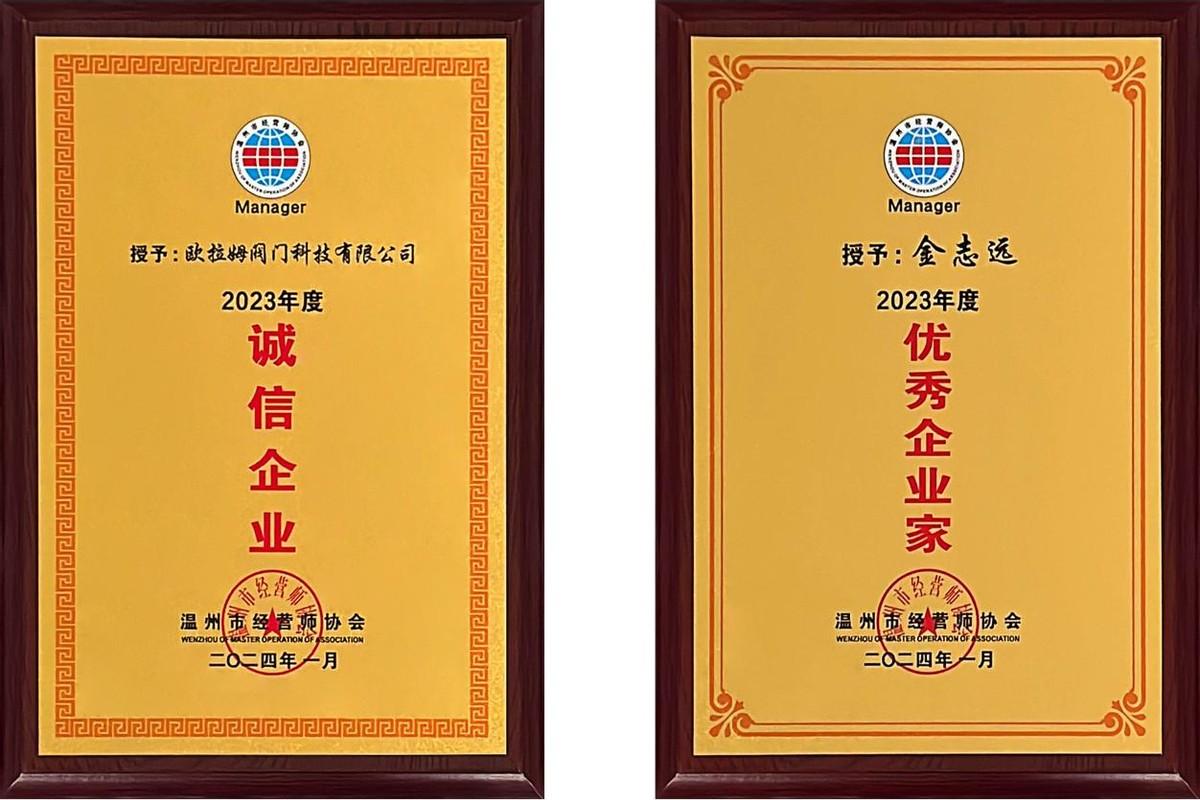 歐拉姆閥門榮獲“誠信企業”稱號,不僅是對其過去努力的認可,也激勵著更多企業秉持誠信為本,共同推動溫州市商業行業的健康發展。